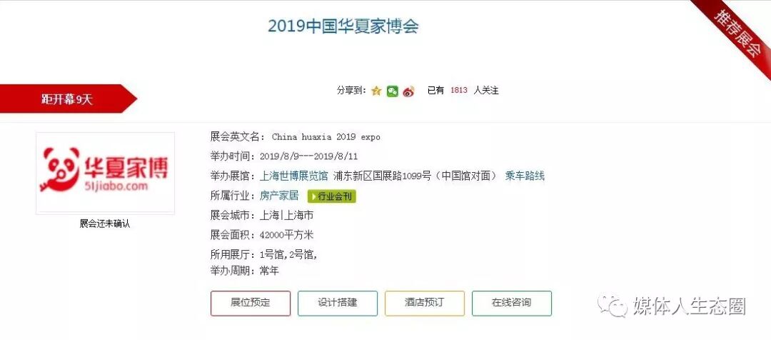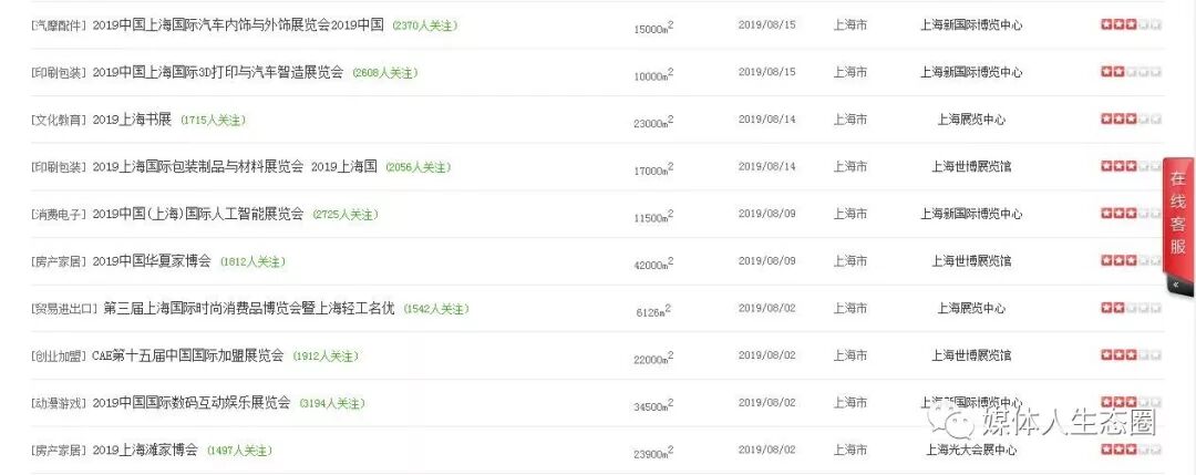 導語 2019年下半年全國各地區展會陸持續續拉開了帷幕。進入8月金秋時節的上海亦絲毫無感覺到秋意綿綿、絲絲涼意;各行各業的展會亦相繼齊聚上海。尤其是以珠寶首飾、家電家居、消費電子制品、音樂樂器、旅游制品、智能家居、家裝建材、養老服務、醫療保健、食品飲料、農林牧漁、能源礦產、安全防護、紡織紡機、孕嬰童、婚慶婚博、創業加盟、文化教育、體育休閑、藝術博覽等各行各業一應俱全。可謂是門類豐富,產業頗多。 話不多說,一睹為快,先跟隨小媒一塊瞧瞧2019年下半年8月份上海地區都有那些行業精彩展會內容呈現吧!2019年8月份上海地區展會信息一覽表: