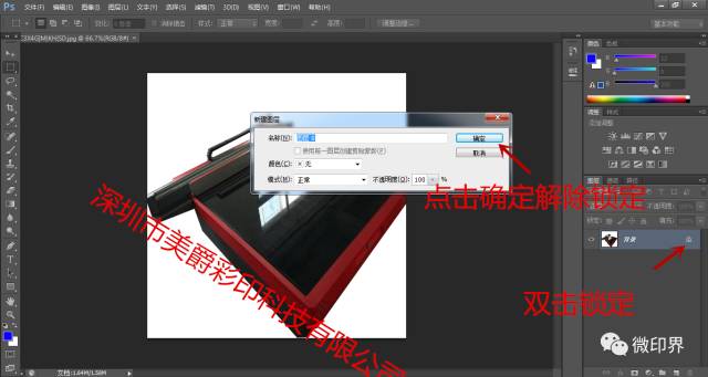 1.打開PS做圖軟件,把需要做的圖案拖至PS,通常JPG格式或PSD 格式的底圖都有鎖定,做圖前必須把鎖圖給解除,如下圖: