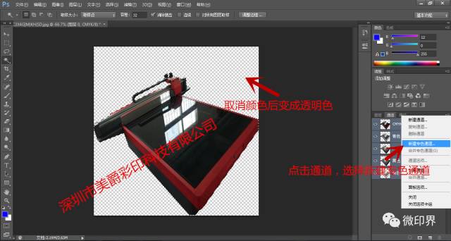 3.選取取消的部分在鍵盤點擊Delete,取消后底色變成透明層→通道→新建專色通道