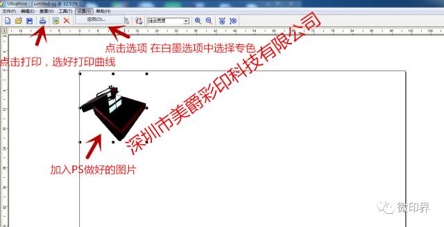 6.導出做好的圖案,點擊選項,在白墨選項中選取專色(倘若不想打印白色在PS中就不要做專色,在白墨選項中選取無),點擊打印