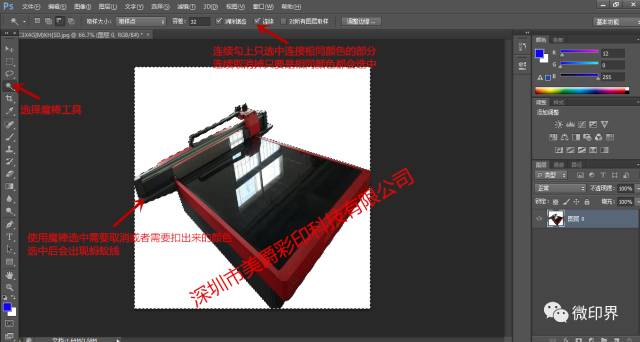 2.解開鎖圖后點擊通道,倘若表示是RGB就要點擊圖像→模式→選取CMYK,再運用魔棒工具,運用工具點擊需要取消的顏色或圖案(只針對同一顏色),倘若圖案色彩比較繁雜就要運用鋼筆工具或套索工具把圖案扣出