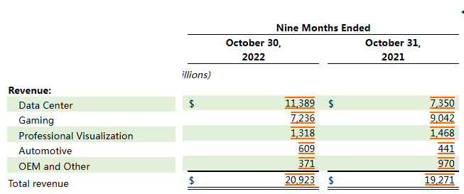 從收入形成來看,數據中心占比54%,游戲占比35%,專業視覺占比6%,汽車占比3%。