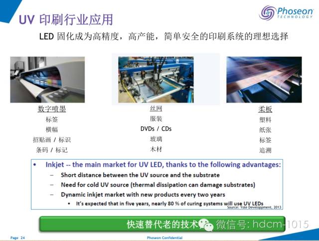 在國內(nèi),亦涌現(xiàn)了一批UV-LED生產(chǎn)企業(yè),她們為推動UV-LED技術(shù)在中國的發(fā)展而奮斗著,這里,為她們點贊,在國家倡導(dǎo)綠色印刷和征收排污費的大環(huán)境下,UV-LED技術(shù)將大有可為,在2016中國標簽西安年會上,您亦能聽到來自國內(nèi)UV-LED企業(yè)為大眾講解最新的案例應(yīng)用狀況。