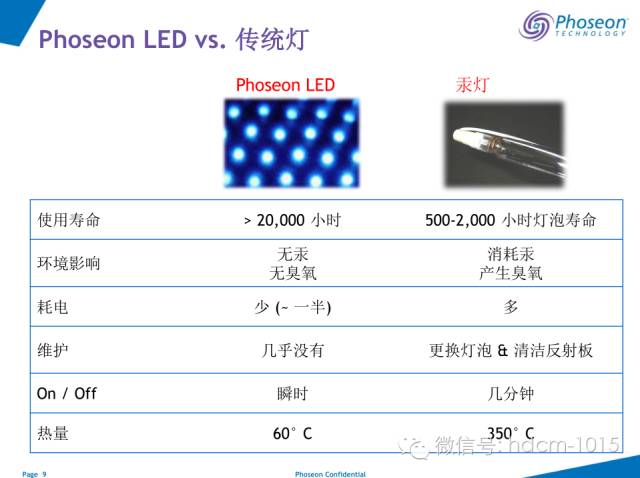 點亮LED陣列(在一個單元中有許多LED)所需的能量比點亮U V燈所需的能量顯著要低。