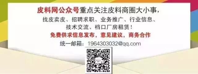 “皮料網”公眾號同期免費供給各樣信息發布服務:包含業務推廣、行業信息、求職招聘、技術交流、檔口廠房租賃等。